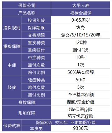 福祿全能保保障的重疾種類有120種,賠付一次,賠付基本保額。